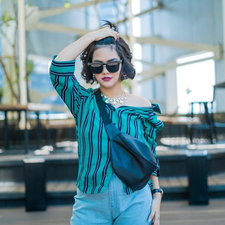 Tak hanya imut dan kece, Mytha juga tampil seksi lho saat hamil. Hanya dengan mengenakan kemeja yang garis-garis, penyanyi ini bisa terlihat seksi pamerkan bahu indahnya.