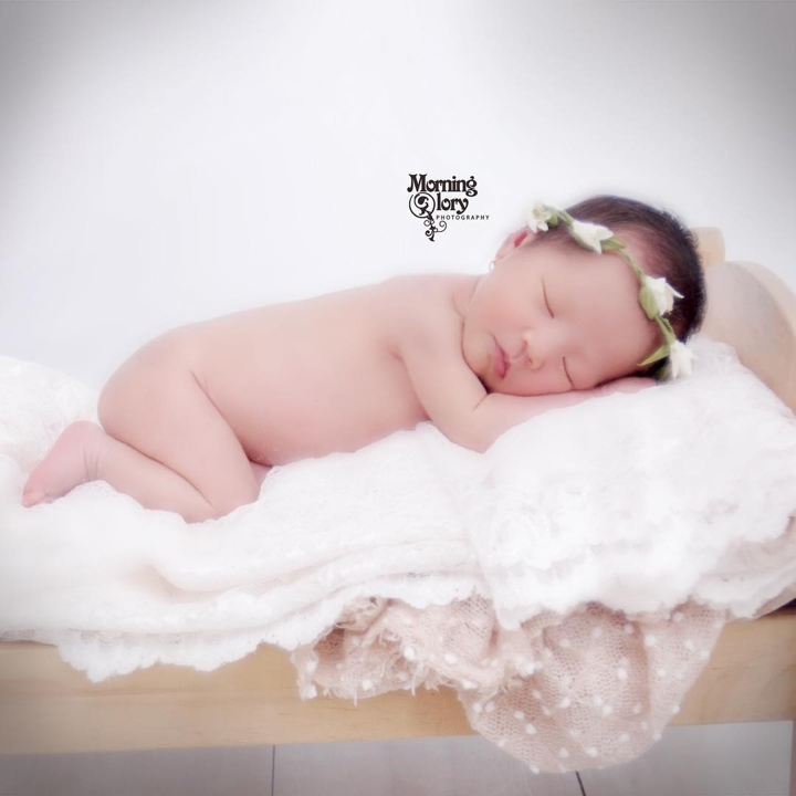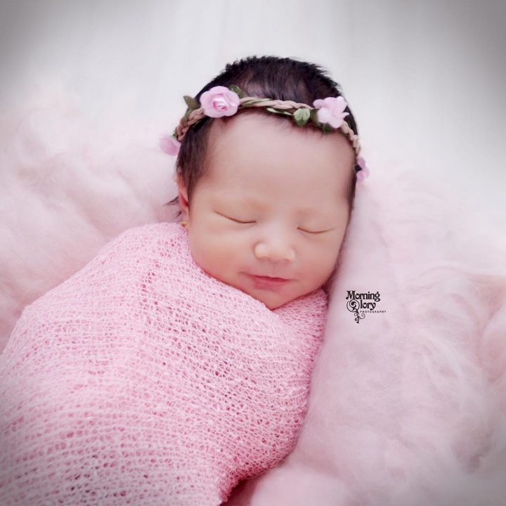 Foto pertama Kimora yang dibagikan kepada publik. Dengan mahkota bunga, bayi Lee itu tampak memberikan senyumnya malu-malu.