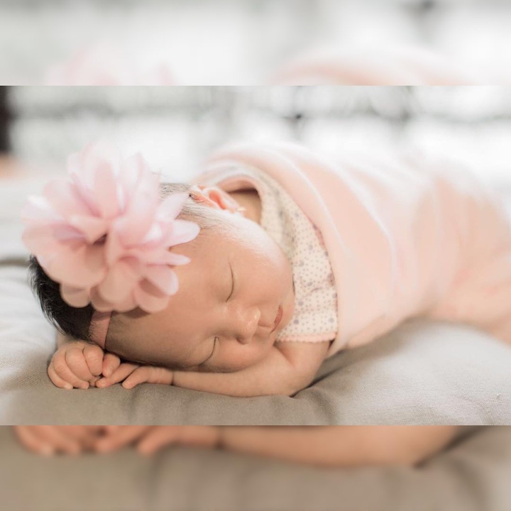 Lagi-lagi publlik dibuat jatuh cinta dengan paras cantik Kimora ini. Terlihat tertidur pulas dengan pakaian dan bando senada berwarna merah muda lembut, Kimora benar-benar tampak seperti peri kecil.
