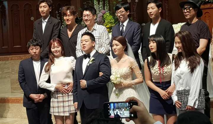 Ada Yoo Jae Seok, Lee Kwang Soo, Kim Jong Kook, Song Ji Hyo, Haha, Yang Se Chan, Ji Suk Jin, dan Jeon So Min. Di pernikahan itu hadir juga penyanyi Hong Jin Young, Lee Sang Yeob dan juga Jung Il Woo.