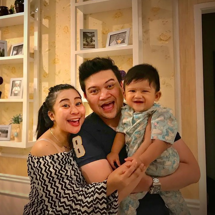 Chiquita dan Indra berpose bersama seorang anak kecil. Udah cocok ya punya anak sendiri.