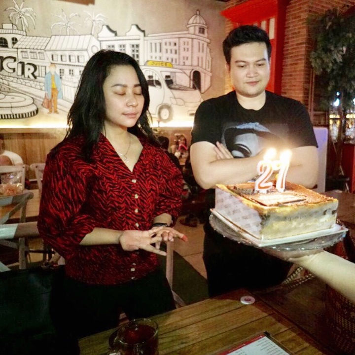 Indra juga turut hadir di pesta kejutan ulang tahun Chiquita. Semoga langeng ya Indra dan Chiquita.