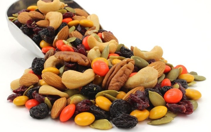 Trail mix merupakan campuran dari makanan seperti kacang tanah, kacang almond, biji bunga matahari dan kismis. Makanan satu ini sebenarnya memang sehat lho. Eits, tapi tidak yang sudah dalam bentuk kemasan dan dijual di toko-toko.