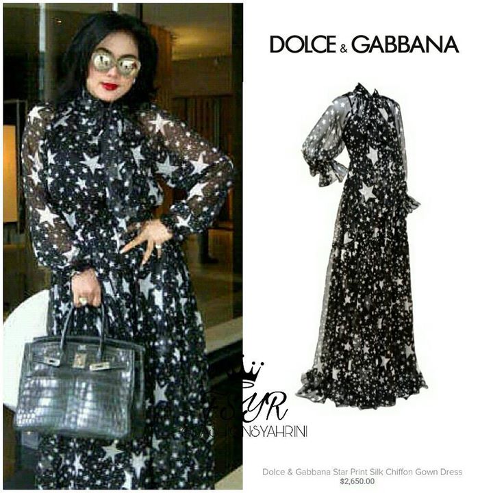 Ia mengenakan Multicolour Silk Dress merek Fendi seharga Rp 49,3 juta. Syahrini melengkapi penampilan cantiknya tersebut dengan sepatu dan tas dari merek Fendi dengan harga Rp 19,9 juta dan Rp 39,1 juta.
