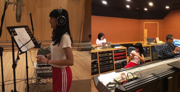 Chloe tampak sedang berada di studio rekaman. Sepertinya saat itu ia tengah berlatih untuk lagu barunya ya.