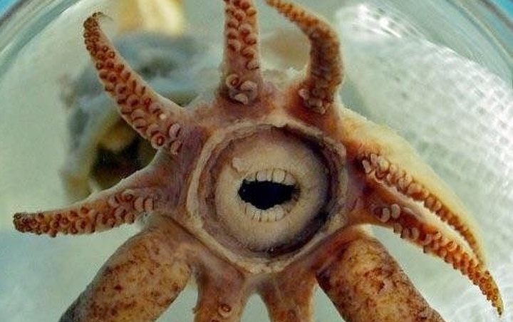 Gurita ini sepertinya merupakan mimpi buruk dalam kehidupan nyata. Lihat gigi-giginya itu seperti siap memangsamu.