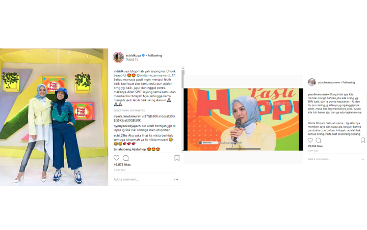 Tentu saja, keputusan Nikita berhijab di tengah-tengah imejnya yang kerap seksi dan buka-bukaan sangat mengejutkan warganet. Mereka merasa takjub dengan perubahan Niki.