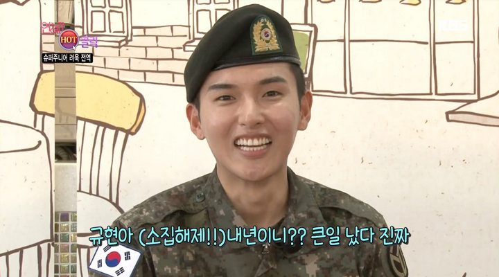 Salah satu yang dibahas Ryeowook adalah Kyuhyun Super Junior yang saat ini masih menjalani tugas wajib militernya. Kyuhyun masuk wajib militer pada Mei 2017 dan akan keluar sekitar Mei 2019 mendatang.