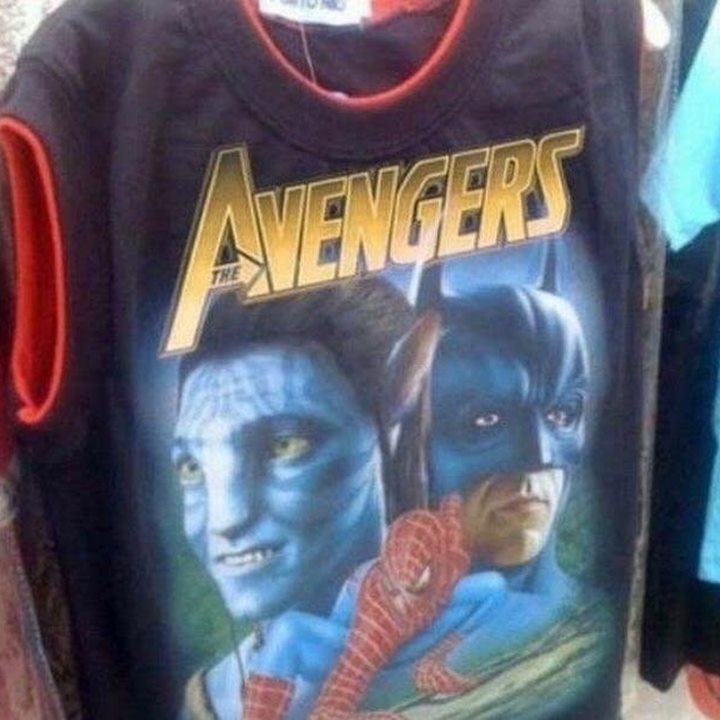 Pakaian untuk anak-anak satu ini kocak banget. Bertuliskan "The Avengers" tetapi gambarnya malah karakter dari film "Avatar" dan "Batman".