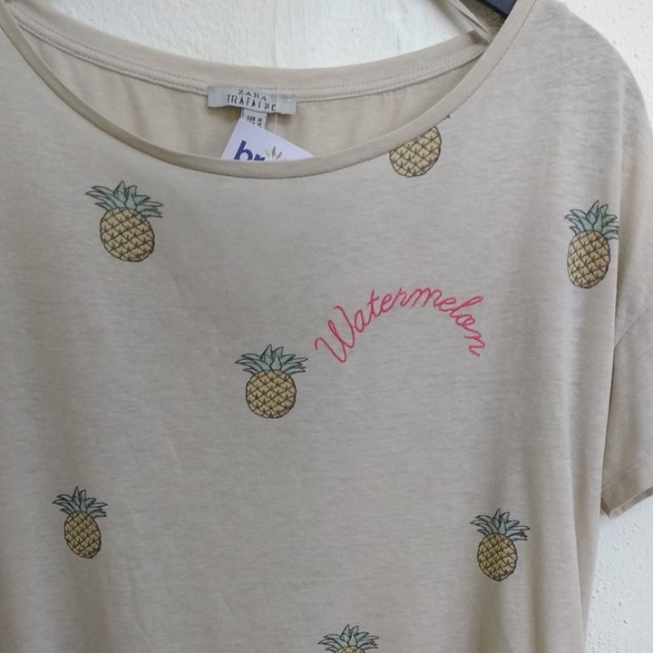 Kaus satu ini tampak lucu dengan motif nanas. Namun, tulisan "Watermelon" yang berarti semangka malah bikin salah fokus, nih.