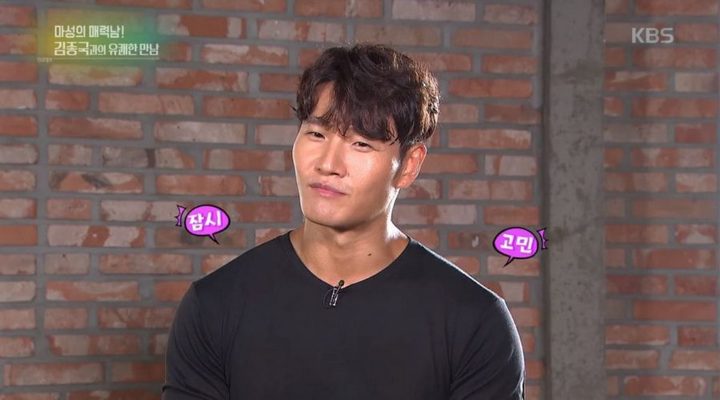 Ketika membahas tentang pernikahan maupun rumor kencan Kim Jong Kook, nama Song Ji Hyo dan Hong Jin Young selalu muncul. MC lalu meminta pria bertubuh kekar ini untuk memilih siapakah yang paling cocok dengan tipe idealnya atau justru memilih melakukan push up 10 kali. Kocak, Kim Jong Kook lebih memilih aman dengan melakukan push up dibandingkan berolahraga.