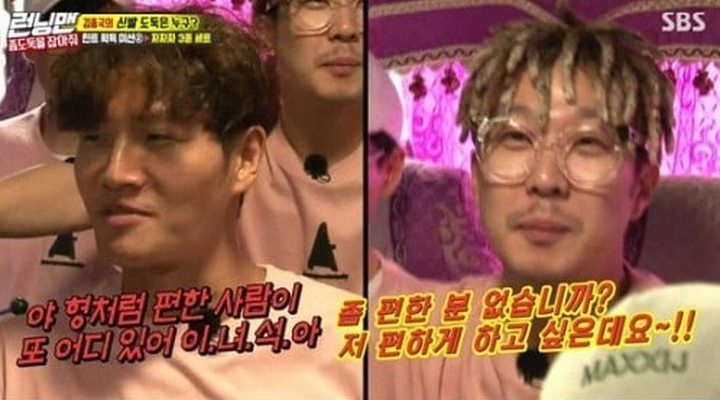 Mendengar protes Haha tersebut, Kim Jong Koonkpun tertawa. "Apakah ada orang lain yang lebih membuat orang lain nyaman selain aku?" sahut Kim Jong Kook.