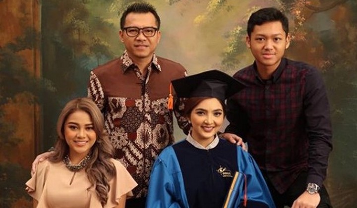 Saat menjalani prosesi wisuda, Ashanty didampingi oleh suami dan kedua anak sambungnya, Aurel Hermasnsyah dan Azriel.