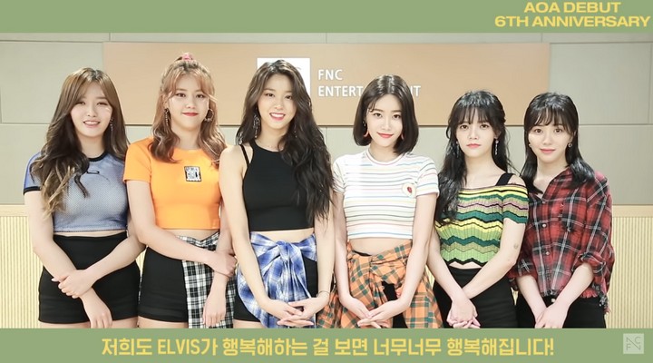 "9 Agustus 2018. AOA merayakan perayaan debut 6 tahun. Terima kasih Elvis yang selalu mendukung dan mencintai AOA," tulis Seolhyun cs. para Tak hanya lewat video unggahan agensi, para member AOA juga memamerkan foto kebersamaan mereka selama 6 tahun ini di akun Instagram pribadi seperti Hyejeong, Jimin, Mina, dan Seolhyun.