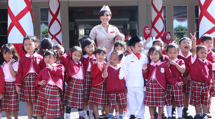 Yuni Shara rayakan Hari Kemerdekaan Indonesia bersama siswa-siswi Paud di Batu.