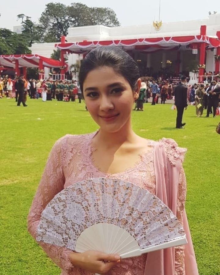 Diundang di Istana Negara, Naysila Mirdad berhasil memukau dengan riasan dan gaya sederhananya menggunakan kebaya. Tak perlu menor, Naysila membawa kipas renda senada dan rambutnya disanggul rapi.
