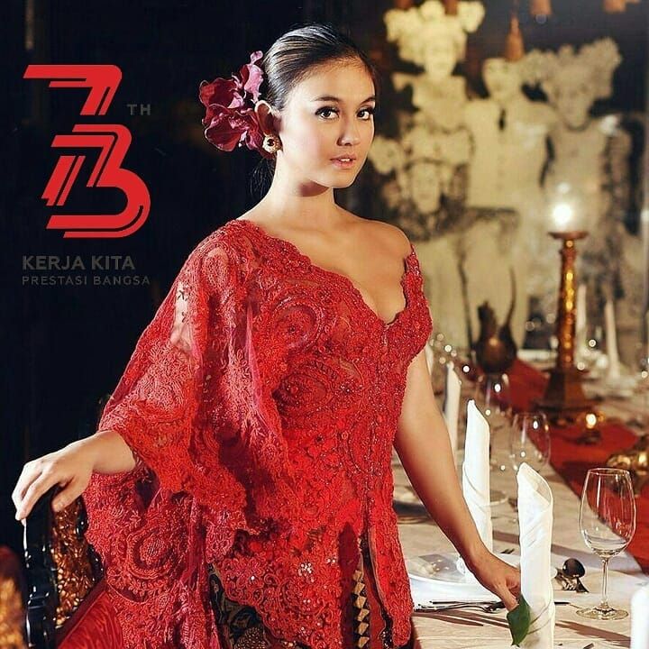 Menjadi artis yang sukses go international tak membuat Agnes Monica lupa akarnya. Ia terlihat mengenakan kebaya merah menyala dan seksi. Rambutnya disanggul serta disematkan bunga besar berwarna senada.