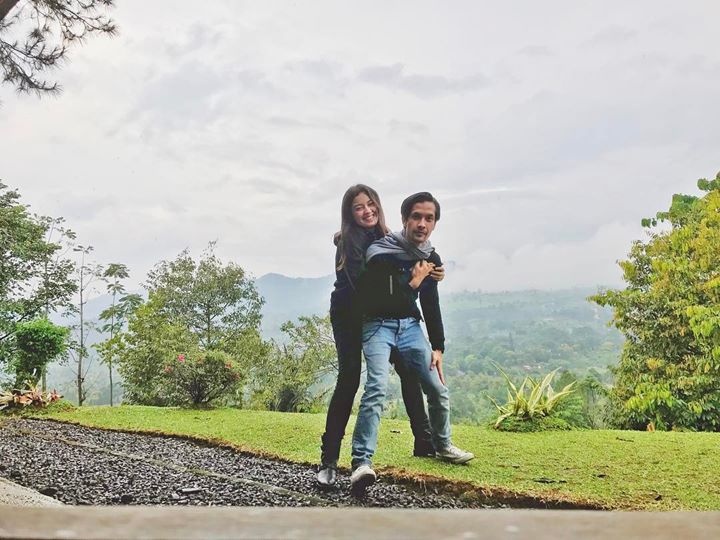 Berlatar belakang pemandangan alam, Kimberly terlihat memberikan pelukan mesra dari belakang pada Edward.