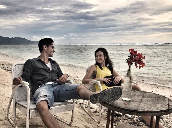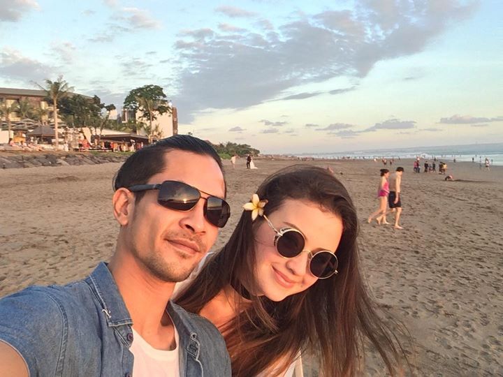 Saat berlibur di Gili Trawangan, mereka menyempatkan diri duduk bersama di pinggir pantai. Sambil bercanda, mereka memberikan tatapan mesra pada masing-masing.
