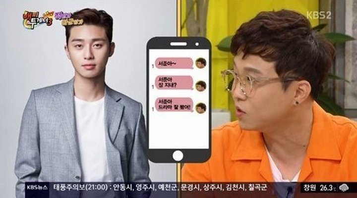 "Aku dekat dengan Park Seo Joon sejak dia masih seorang rookie," terang Park Sung Kwang. "Namun setelahnya, aku menghubunginya sesudah ia sukses dan tanda '1' tidak juga menghilang di ruang percakapan KakaoTalk (yang berarti pesan tidak terbaca). Kelihatannya dia mengganti nomor ponselnya (tanpa memberitahukanku)."