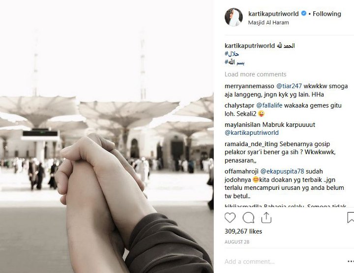 Sempat tak lagi dibahas, Kartika kembali mencuri perhatian berkat unggahan di akun Instagram pribadinya. Dalam foto tersebut, ia mengunggah dua tangan yang bergandengan di depan Masjid Nabawi Madina. Dalam keterangannya, ia juga menuliskan kata-kata "halal".