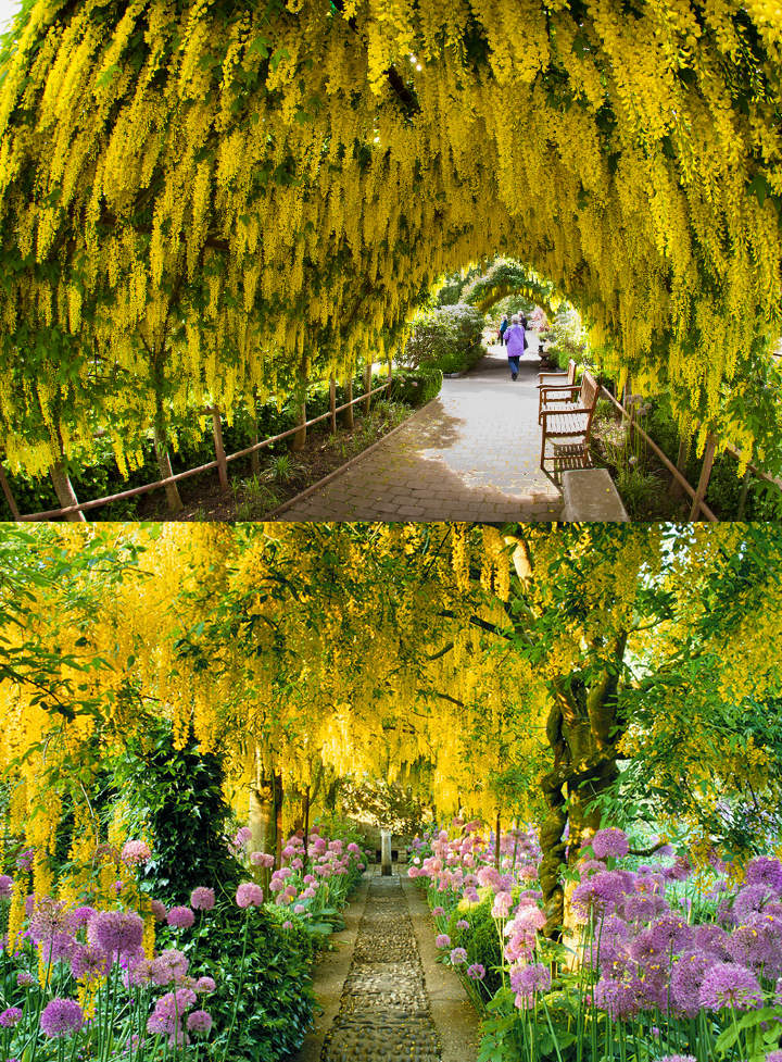 Terowongan Laburnum menjadi fitur paling populer di Bondant Garden di Inggris. Ketika mekar, bunga laburnum akan menggantung di sepanjang jalan dan menghasilkan pemandangan yang menakjubkan.