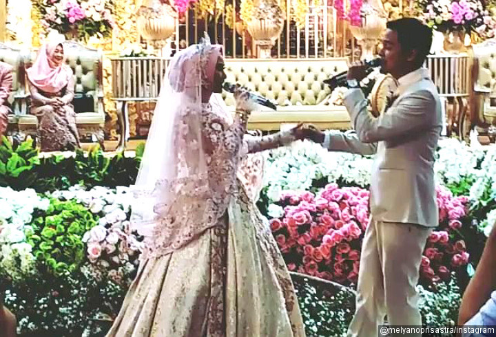 Setelah momen tersebut, kedua pengantin baru ini tampak malu-malu, khususnya Anisa. Ia terlihat menggoyangkan tubuhnya ke kanan dan ke kiri.