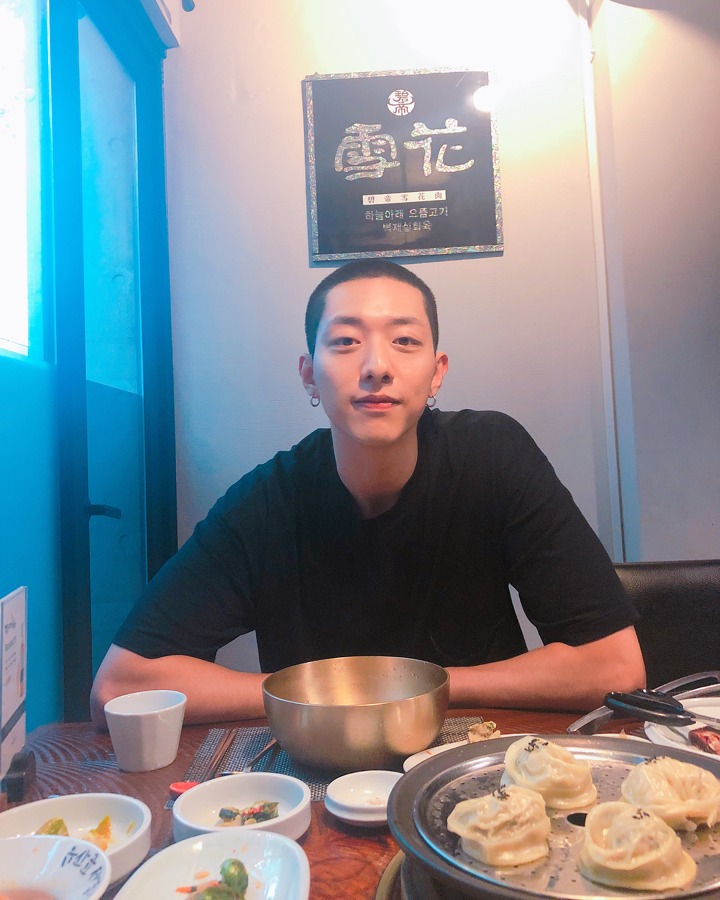 Meskipun bertubuh kurus, Eunkwang masih ganteng dengan rambut cepak.