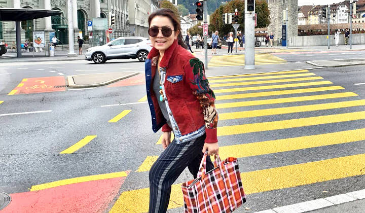 Dalam unggahan pertamanya, Mayangsari terlihat tengah menikmati liburan di luar negeri sambil menenteng tas jinjing bernuansa kotak-kotak. Mayangsari tampak berdiri di pinggir jalan dengan pose khas ibu-ibu sosialita.