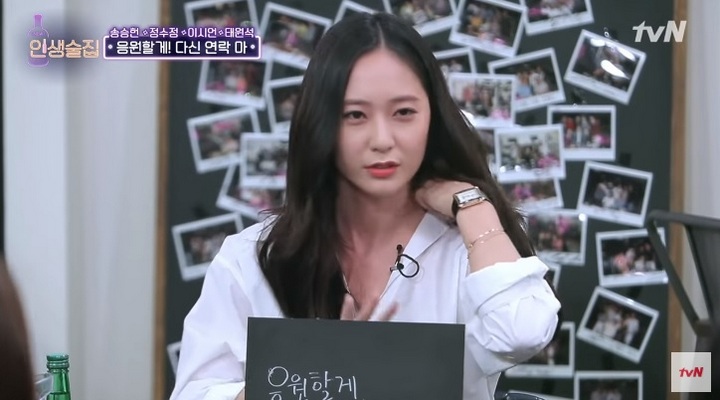 Selanjutnya, Han Hye Jin bertanya, "Apakah kau tidak pernah berpikir untuk mendekati atau pacaran dengan orang lain lagi (setelah putus)?" Krystal mengungkapkan, "Aku selalu berusaha untuk memberikan yang terbaik dalam semua hubunganku dengan orang lain, termasuk dalam hubungan asmara. Jadi jika kami putus, bagiku, kami memang sudah benar-benar putus. Aku tidak memiliki pikiran untuk kembali pacaran dengan orang itu lagi."