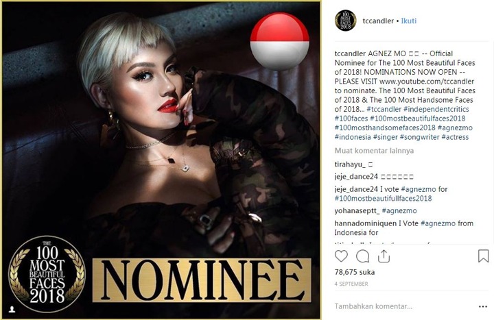 Agnes memang sudah malang melintang di dunia hiburan Internasional. Lantas, apakah kepopulerannya di tingkat dunia bisa mengantarkannya memasuki posisi atas di 100 Wajah Tercantik Dunia versi TC Candler? Kita nantikan saja.