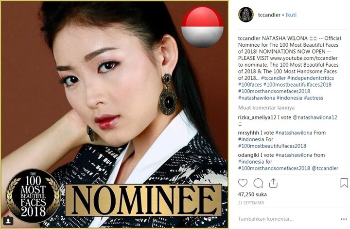 Kontes The 100 Most Beautiful or Handsome Faces of 2018 kembali digelar. Kontes ini sudah ada sejak tahun 1990. Ajang pencarian insan paling cantik dan tampan ini dipelopori oleh kritikus film bernama TC Candler.