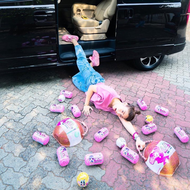 Tampil serba pink, Ayu Dewi ikuti tantangan Falling Stars Challenge dengan memamerkan mainan LOL Surprise. Kocak banget, ya.