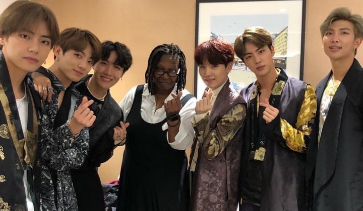 Whoopi Goldberg tampaknya tidak bisa menolak pesona dan kharisma Bangtan Boys usai bertemu langsung dengan para artis asal agensi Big Hit Entertainment ini. Di foto-foto yang dia unggah melalui akun Instagram ini, Bangtan Boys sendiri memang tampil keren dan ceria.