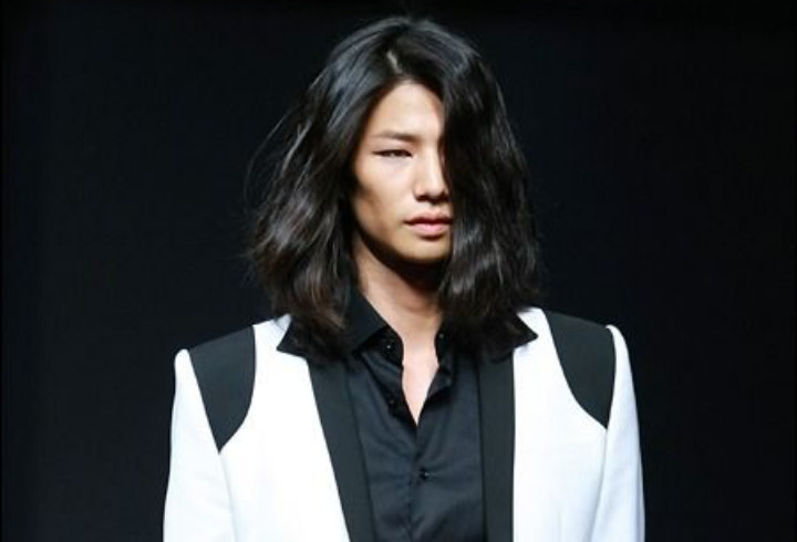 7. Song Jae Rim Berjalan di Catwalk dengan Rambut Panjang