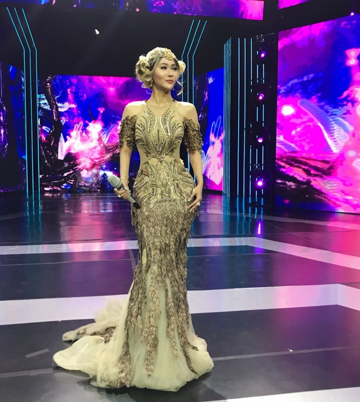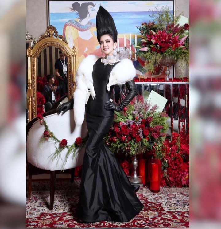 10. Dandanan Nyentrik Inul Daratista dengan Gaun Mewah dan Headpiece Unik