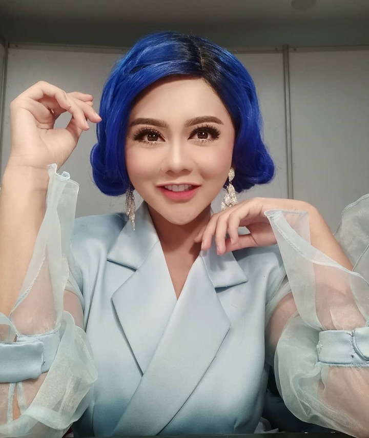 3. Jenita Janet Tampil Nyentrik dengan Wig Warna-Warni Miliknya
