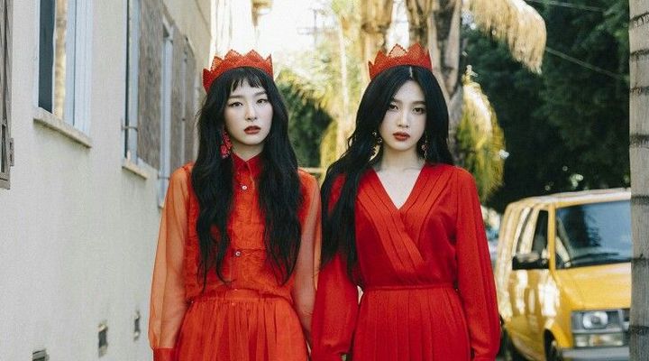 Sementara Joy yang dikenal memiliki bodi ideal kenakan celana ketat merah bermotif dengan sepatu boots hitam selutut. Atasannya, idol kelahiran tahun 1996 ini kenakan tanktop berwarna merah dipadu dengan blazer crop berwarna hitam.