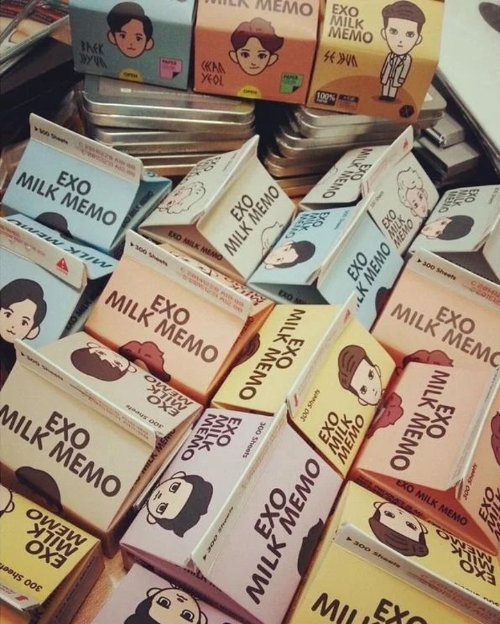 Sudah pernah mencoba produk susu resmi EXO? Eits, produk ini sebenarnya bukan minuman, kok. Hanya memo yang berbentuk kotak susu. Menggemaskan, ya.
