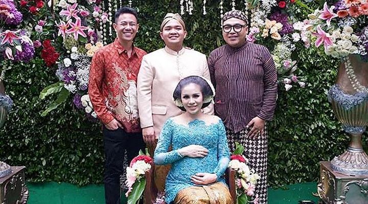 Pada kesempatan yang lain, Momo berganti baju mengenakan kebaya berwarna tosca. Ia terlihat cantik dan anggun dengan perutnya yang terlihat sudah membesar.