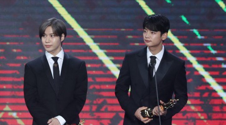 Dalam hal ini, Minho dan Taemin meluangkan waktunya untuk mewakili pengambilan piala tersebut. Tampak keduanya kompak mengenakan setelan jas serta dasi dan menerima bunga dan piala Bonsang tersebut.