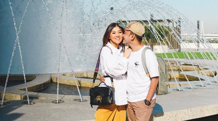 Begini potret menggemaskan saat Sarwendah dan Ruben Onsu mengadu perut mereka.