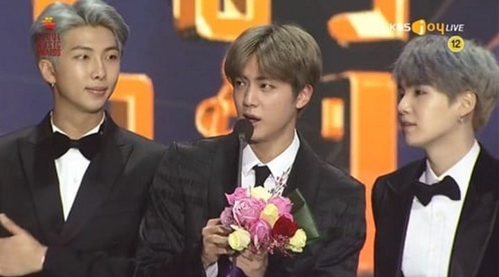 Bnagtan Boys naik ke panggung dan mengungkapkan pidato kemenangan mereka. Ketika giliran Jin berbicara, member Bangtan Boys ini menggunakan kesempatannya untuk membahas tentang perilisan album baru mereka. Jin juga menunjukkan dukungannya pada grup baru Big Hit Entertainment yang bernama TXT.