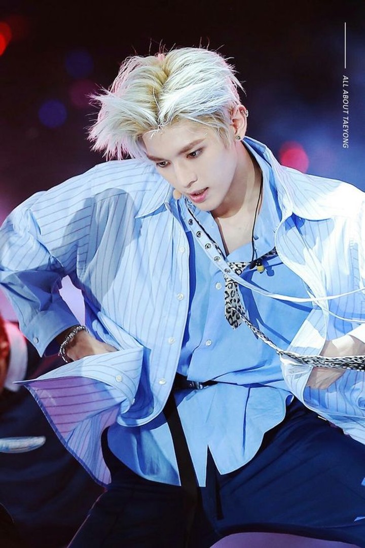 Taeyong dengan warna rambut light brown mungkin jadi salah satu penampilan terbaik, ya. Ganteng banget.