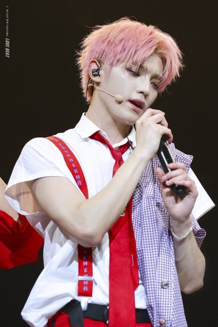 Taeyong enggak kalah cakep dengan rambut pink seperti ini. Menggemaskan, ya.