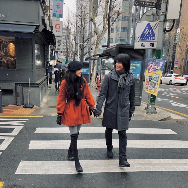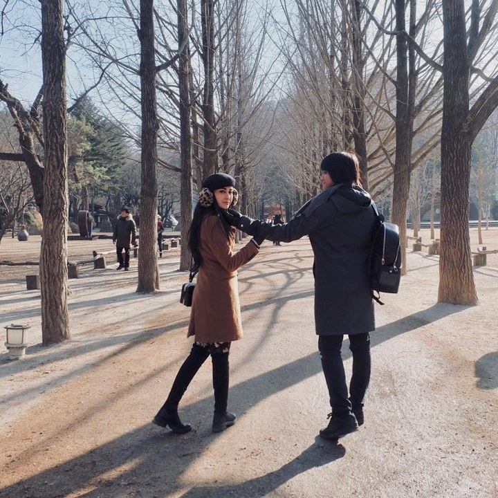 Selama berada di Korea Selatan, Kevin dan Vicy tentu tak melewatkan waktu untuk jalan-jalan. Mereka juga terlihat berpose mesra saat berpose di suatu jalan di Seoul, Korea Selatan.