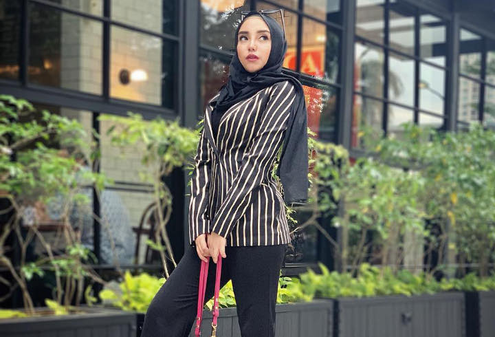 Dengan blazer stripe, penampilan Salma menjadi lebih elegan layaknya wanita karier. Celana panjang model cutbray bikin penampilannya terkesan santai.
