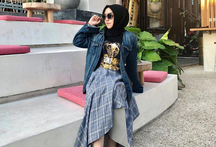 Jika kalian berencana liburan ke luar negeri tapi bingung memilih busana, OOTD seperti Salma ini bisa jadi pilihan yang pas. Rok span motif yang ketat dengan atasan serba hitam bikin penampilan tetap kece.