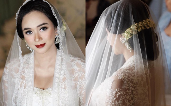 Tak kalah cantik dari lainnya, Aura Kasih mengandalkan sanggul rendah pada bagian belakang. Ia menambahkan melati khas pengantin tradisional dan bunga putih sederhana. Bagaimana menurut kalian?