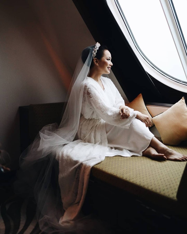 Tagar #CrazyINlovewithYu dipilih Yuanita dan Indra untuk menyambut pernikahan mereka. Terlihat Yuanita tengah memandang ke jendela dengan bahagia jelang prosesi pernikahan.
